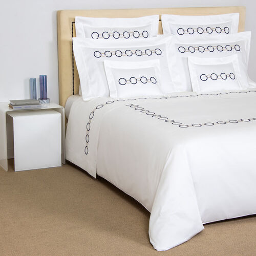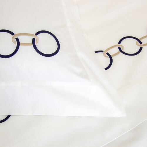 The Links Embroidery Sham is composed of smooth and lustrous long-staple cotton sateen and features a beautifully crafted chain embroidery on its front side.
