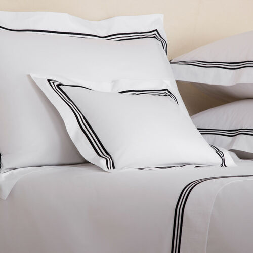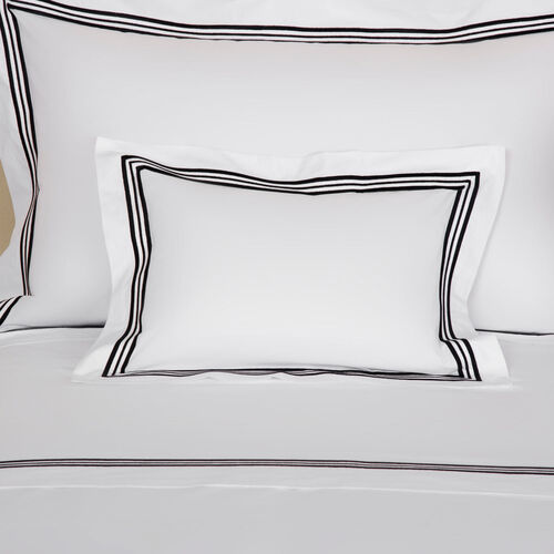 Soft and smooth with high shine, the Triplo Bourdon Boudoir Sham is crafted from pure cotton poplin and embellished with a three-line embroidery.