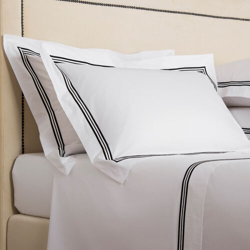 Soft and smooth with high shine, the Triplo Bourdon Sham is crafted from pure cotton poplin and embellished with a three-line embroidery