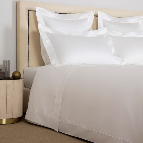 Soft and smooth with high shine, this cosy long-staple cotton sateen duvet cover is finished with an elegant shadow stitch. 100% cotton. Made in Italy.