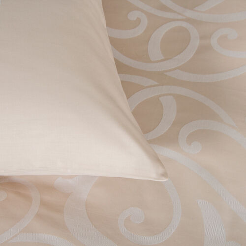 The Medallion Heart Duvet Cover features an intricately crafted jacquard design carefully woven on a uniquely oversized loom on soft and silky cotton sateen.