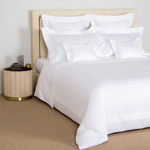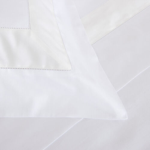The Bicolore Sheet Set features an elegant contrasting border finished with Frette's signature open hemstitch on silky smooth cotton sateen.