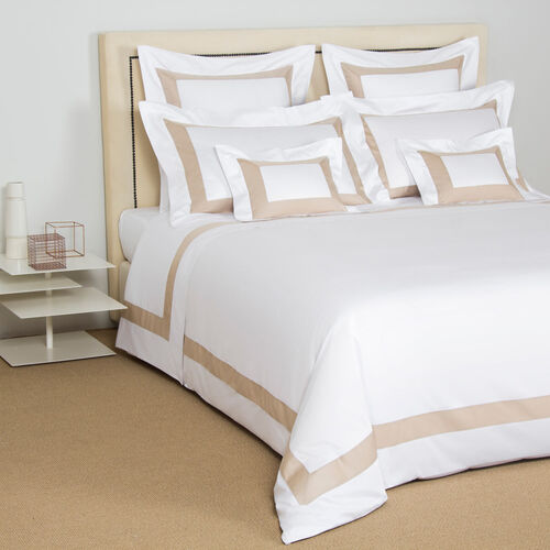 The Bicolore Sheet Set features an elegant contrasting border finished with Frette's signature open hemstitch on silky smooth cotton sateen.