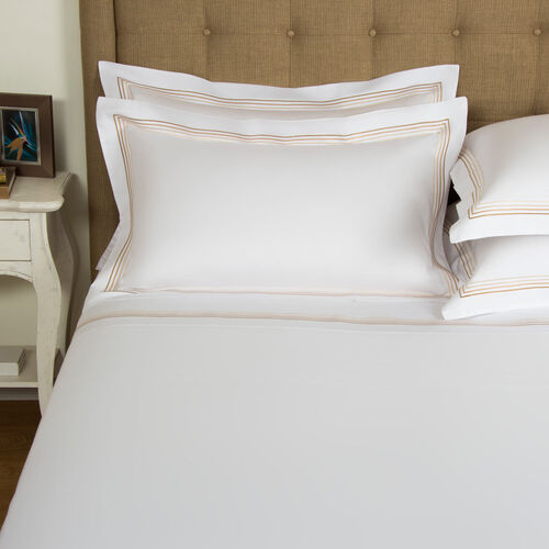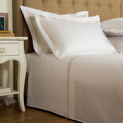 The pristine Cruise Sheet Set celebrates the beauty of pure simplicity with its luxurious cotton sateen fabric and 4 line embroidery