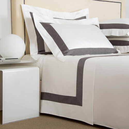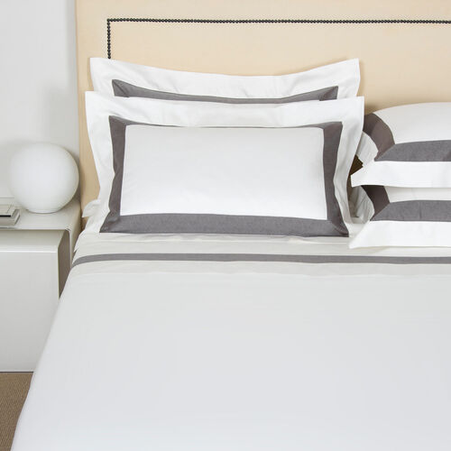 The design of the Forever Border sheet set is simple and bold, and the contrasting colours offer a clean, modern appeal that maintains its beautiful opulence. Pair this sheet set with the matching duvet cover or allow it to harmonize elegantly with the Forever duvet and standard shams. Each look embraces the sophisticated simplicity of this exceptional design. Pure extra long staple cotton. Made in Italy.