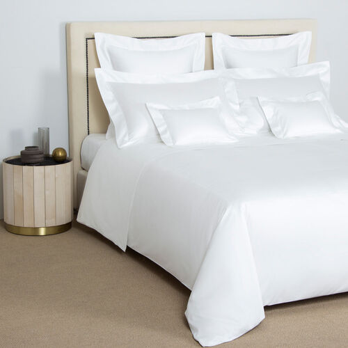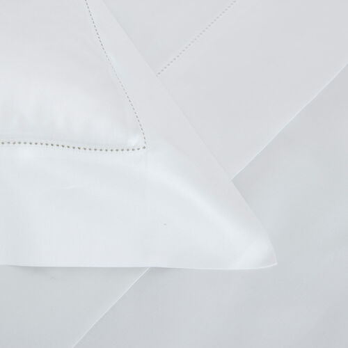 A sheet set in smooth and lustrous cotton sateen featuring a top sheet and two pillowcases embellished with Frette's signature open hemstitch. The sheet set includes a top sheet, two pillowcases, and a solid bottom sheet. 100% cotton. Made in Italy.