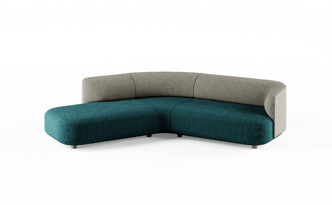 l design accattivante e contemporaneo si adatta con naturalezza ai più diversi contesti architettonici. Le linee solide e geometriche della seduta fanno da contrappunto a uno schienale avvolgente, ampio, dalle linee morbide e plasmate. Il continuo rapporto tra questi due elementi è inoltre enfatizzato da moduli terminali aperti, che invitano alla convivialità e alla relazione con l’ambiente circostante, suggerendo un’atmosfera rilassata e domestica.