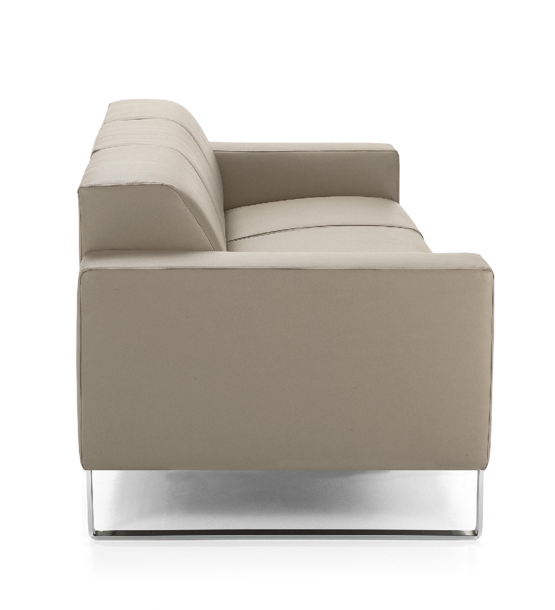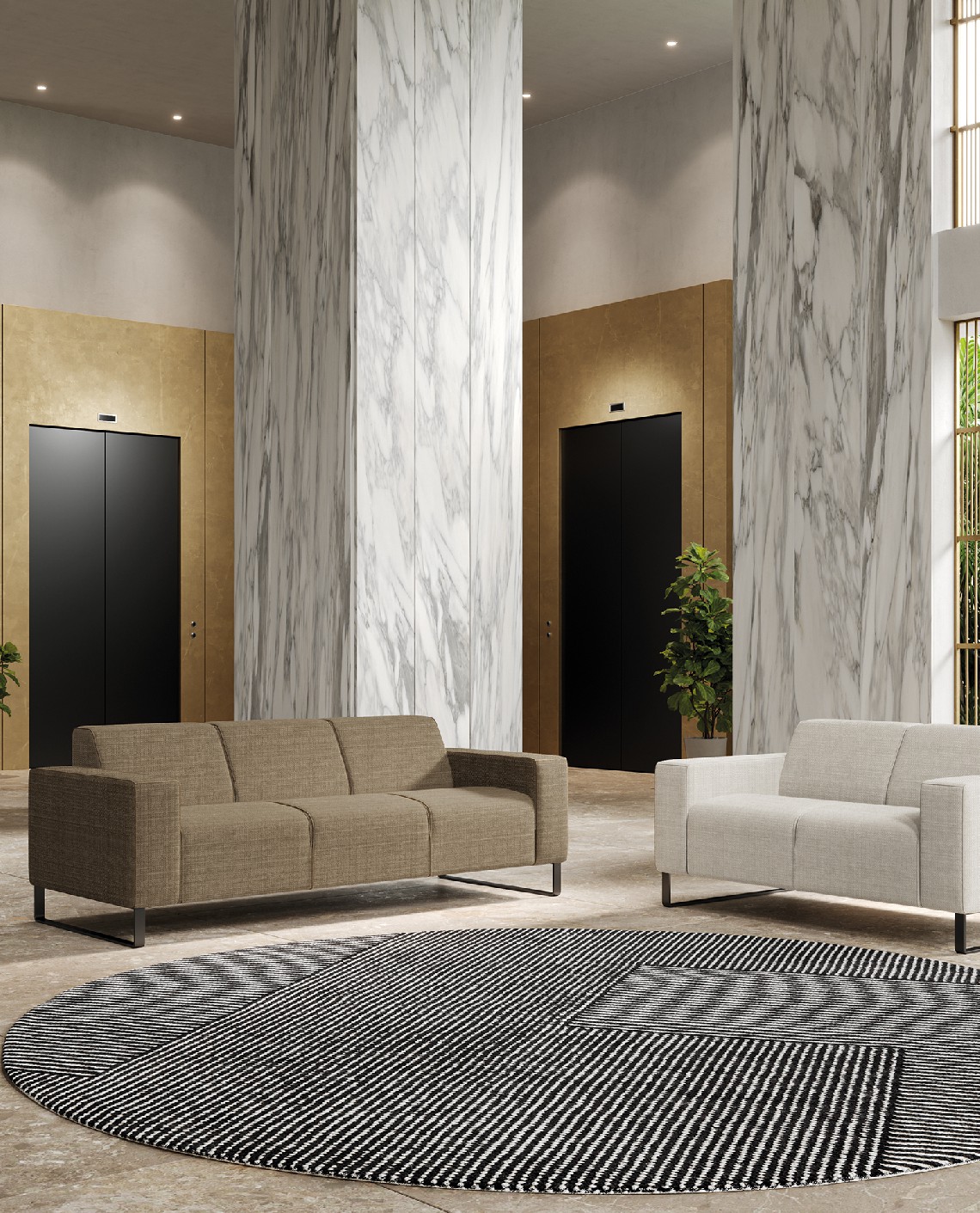 Purezza formale e solidità contraddistinguono la seduta grazie alla struttura interna in multistrati di legno e all’imbottitura in poliuretano flessibile ed indeformabile.
