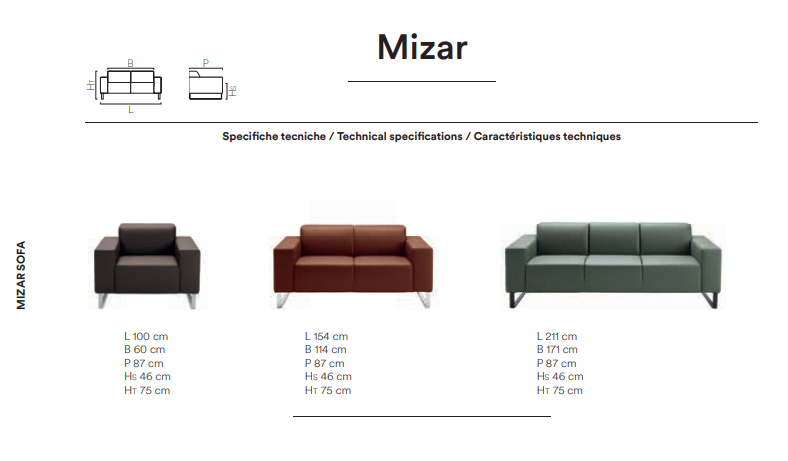 Struttura energica, forme accoglienti, equilibrio tra altezza e profondità: Mizar è una collezione di poltrone e divani a due o tre posti, capace di arredare l’ambiente ufficio e contract, le sale attesa, la casa.