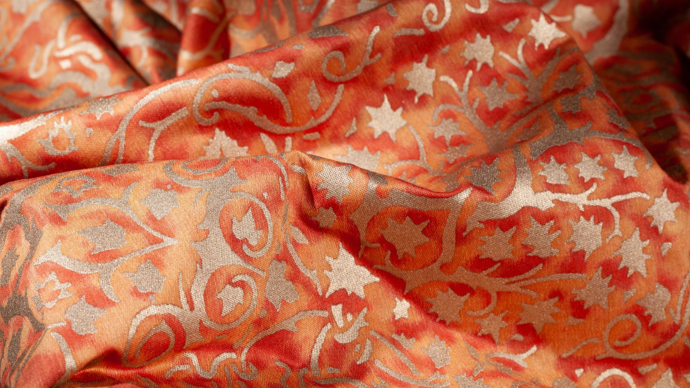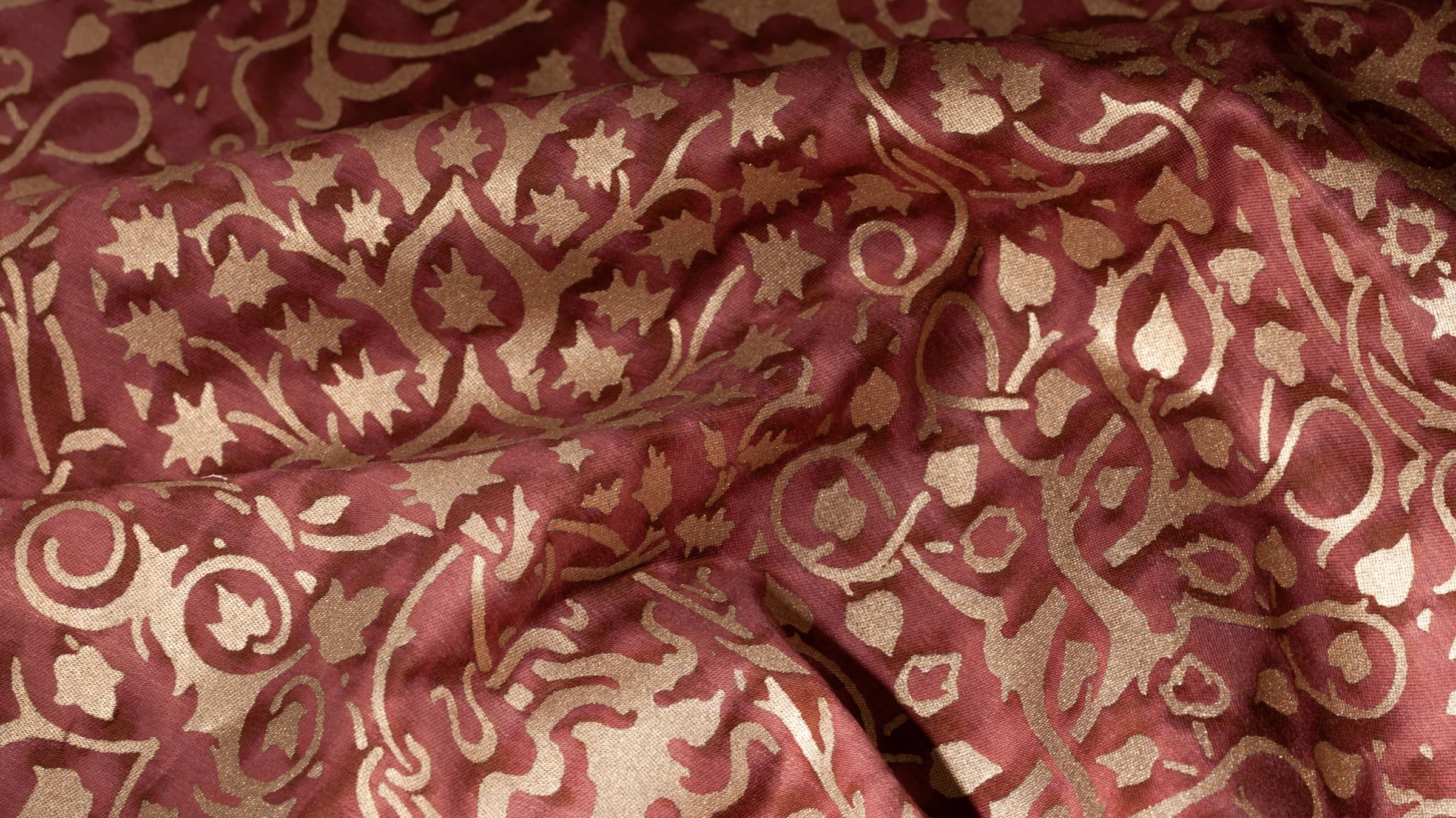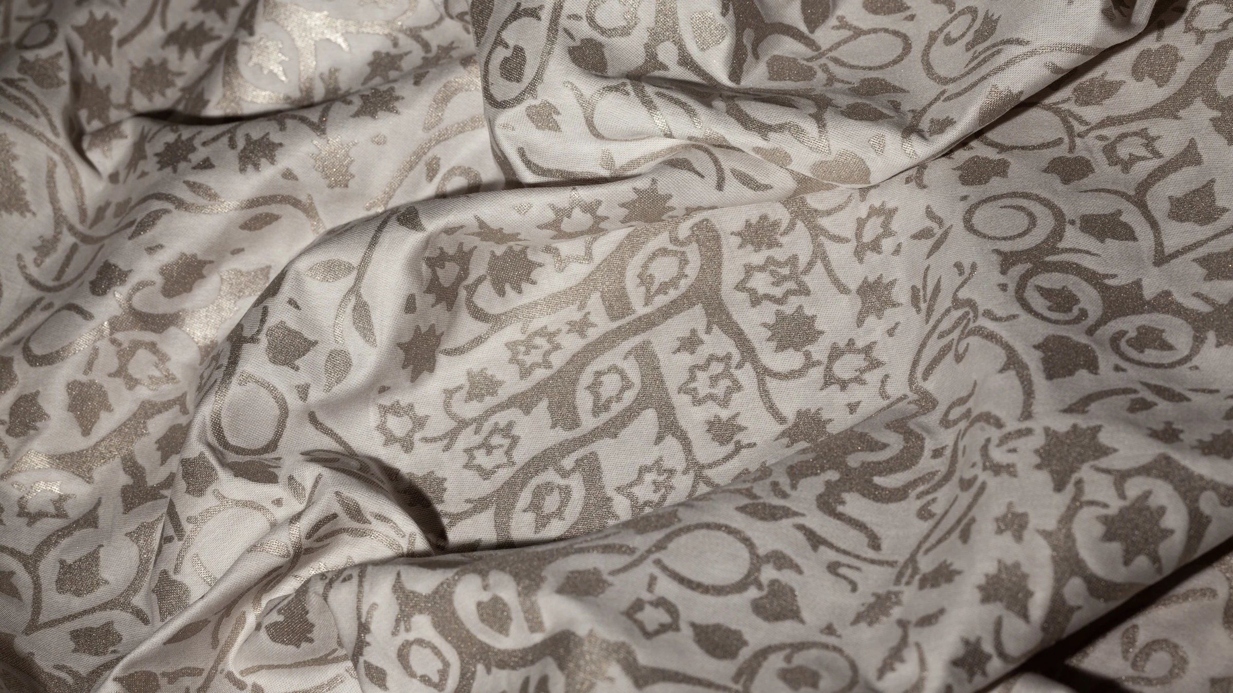 PIGNE is a later design by Mariano Fortuny which features an intertwining pine cone motif. Prickly, layered, and abstract, the complex, arabesque structure of PIGNE is like a beautiful twirling and unfurling of the pine cone’s Sacred Geometry. A symbol of fertility, spiritual consciousness, and everlasting life, PIGNE is a timeless and versatile motif.