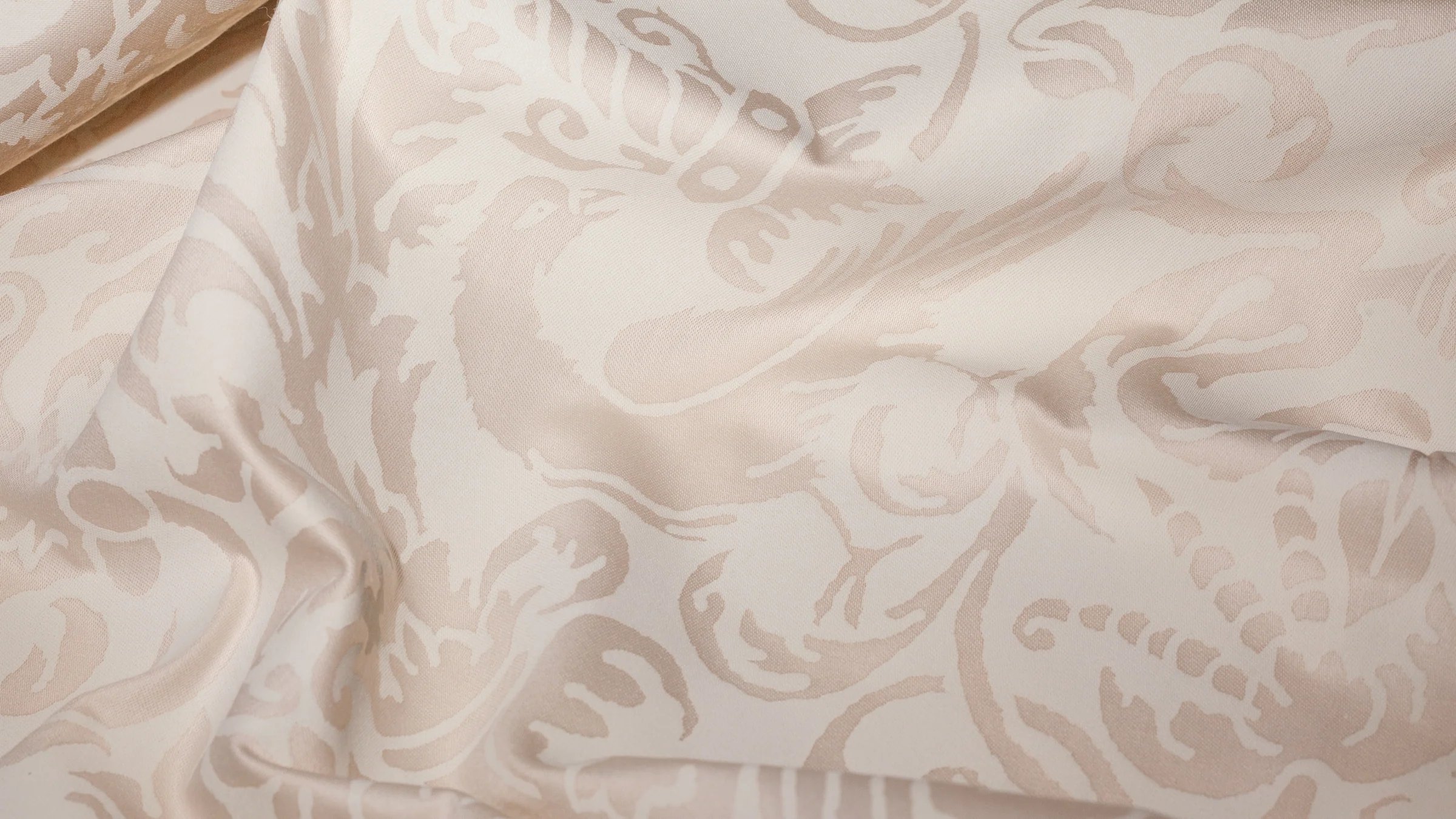 The ribbony vines and intertwining tendrils in UCCELLI, a 17th-century French design, create an elaborate aviary for this charming bird motif. From behind the flowers and foliage comes the sweet song of the wild.