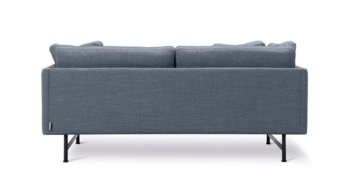 The Calmo 2-seater sofa offers a roomy sense of cosiness, where straight lines converge with discrete curved details. Comfy cushions complete the picture in this understated expression of elegance.