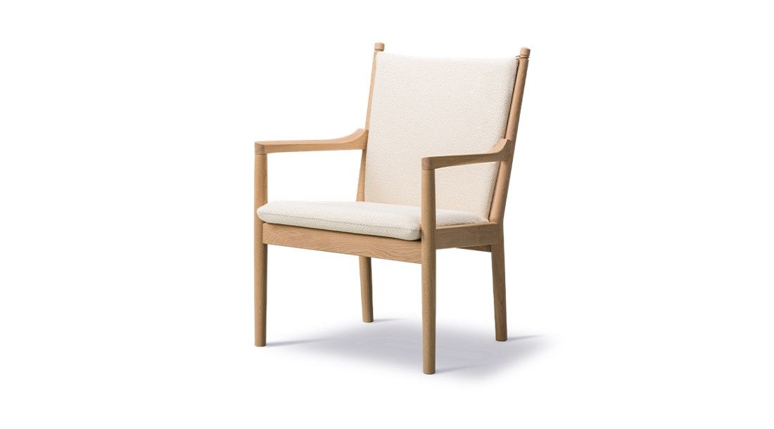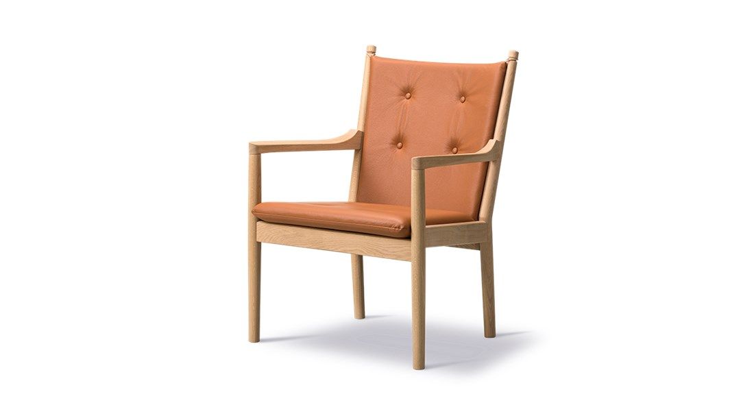 The 1788 chair features a stunning profile in the sloping armrests, reflecting Wegners signature sculptural details and talent for working with wood.