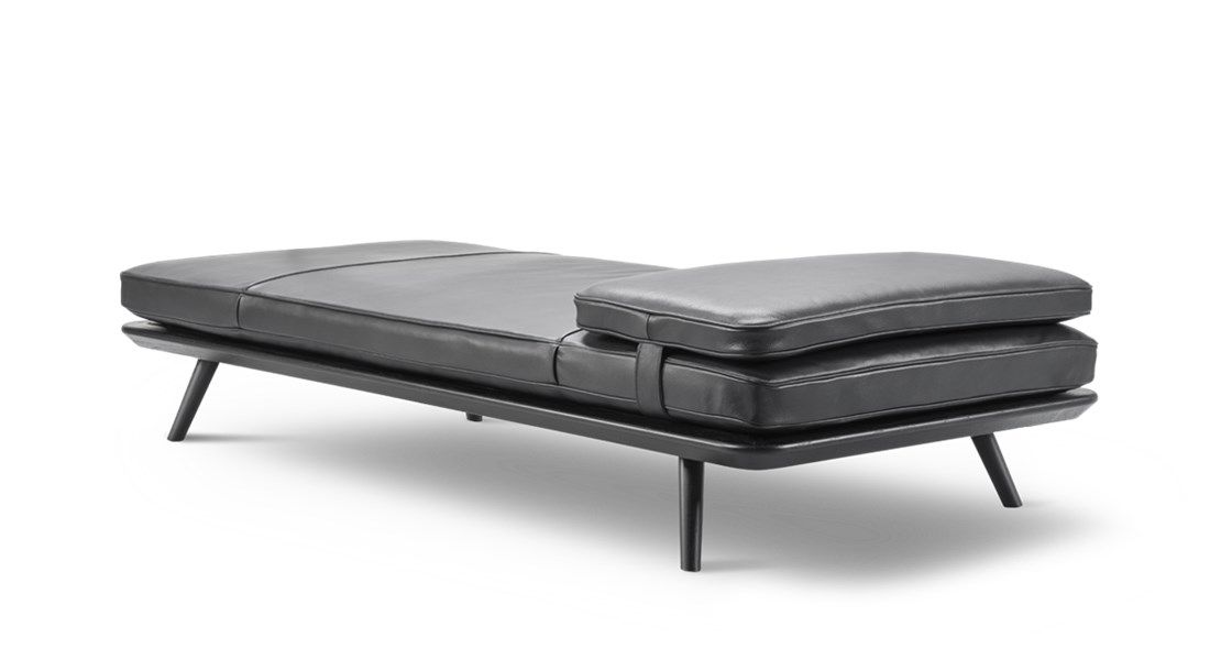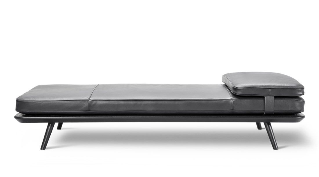 Spine Daybed pays respect to the proud upholstery traditions on which Fredericia built its name, while providing a dash of modernity in its own succinct and simple way. The head cushion is secured with a leather strap.