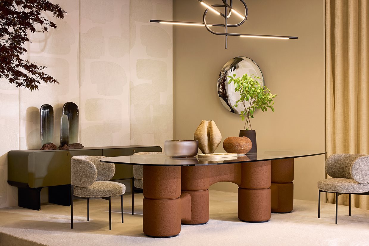 Madia con base in frassino curvato tinto nero poro aperto e dettagli in ottone lucido. Contenitore in legno rivestito in pelle fard nei colori del campionario. Dotata di ripiano interno in cristallo extralight 10mm temperato.