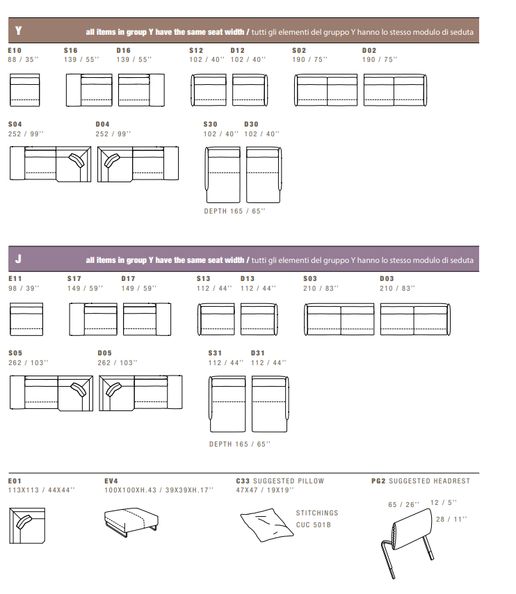 All corner elements include one C33 (CUC 501 B) throw pillow free of charge.