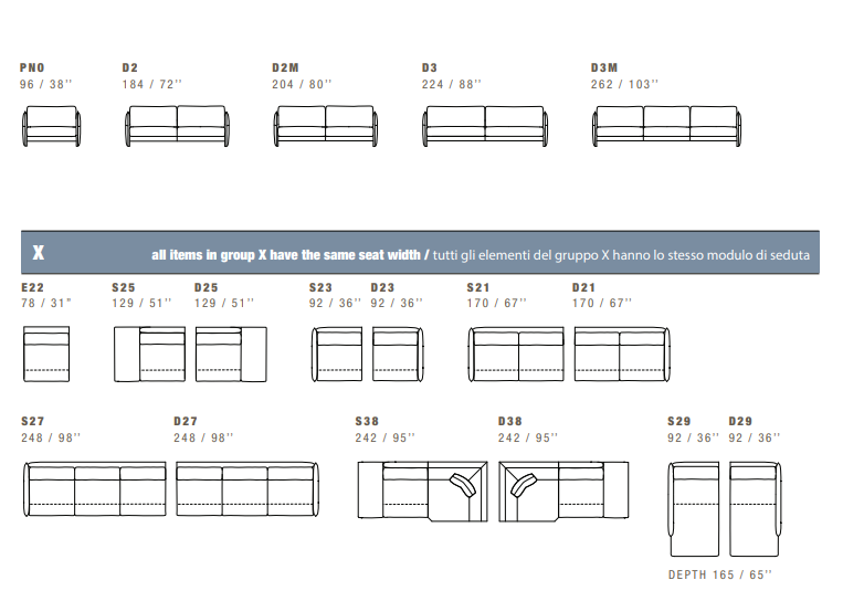 Seat depth 57 cm - 22".