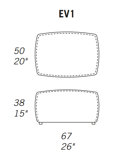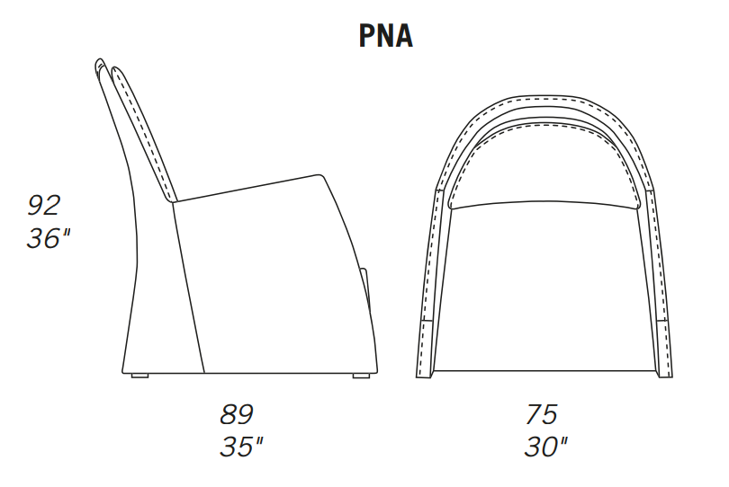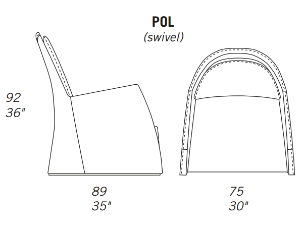 Seat and back cushion in polyurethane covered with dacron wadding.