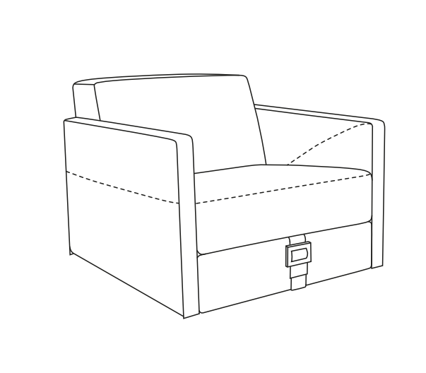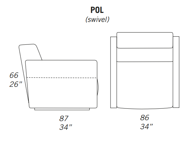 Seat cushion and frame in polyurethane covered with dacron wadding.