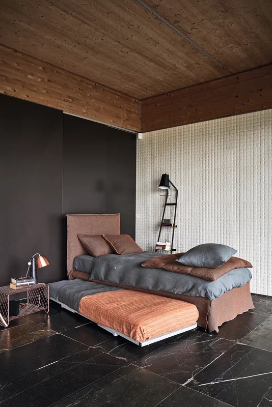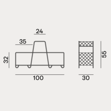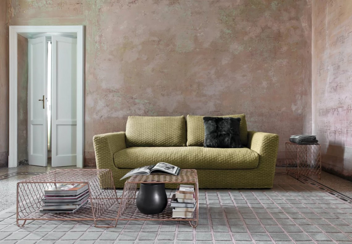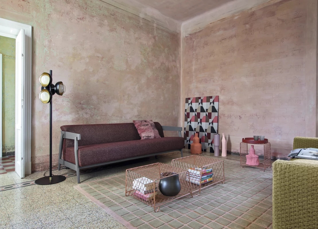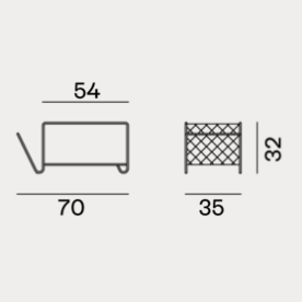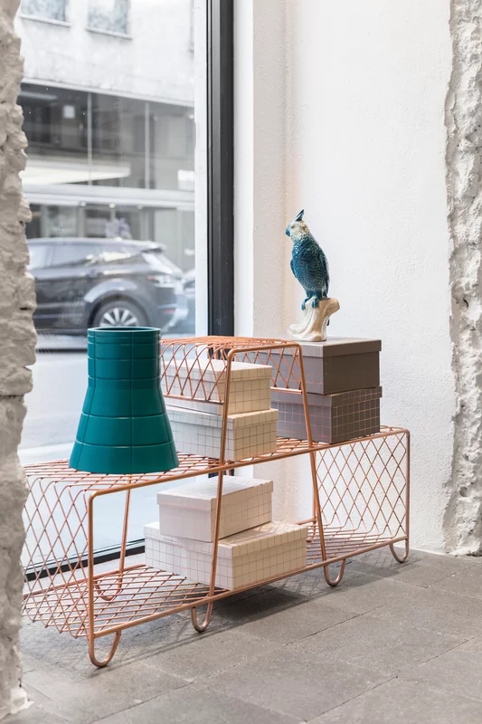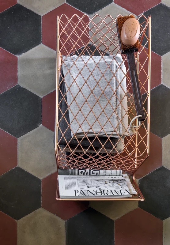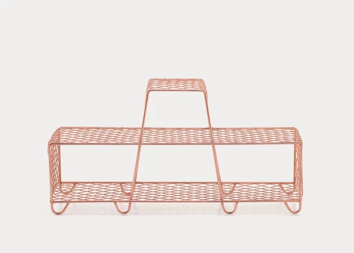 Tavolini e portariviste a rete in filo di acciaio ramato compongono la collezione Cross. La rete è piegata e sagomata in diverse configurazioni che danno vita ad una famiglia di arredi dalle dimensioni contenute che grazie alla loro struttura e linee sottili si inseriscono perfettamente in ogni ambiente.