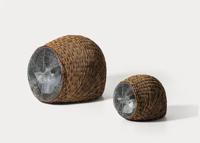 Famiglia di ventilatori da terra o da tavolo uniscono estetica e funzionalità, caratteristiche che li rendono un vero e proprio complemento d’arredo. Disponibili in due dimensione, S o L, hanno una forma sinuosa dovuta grazie alla struttura in giunchino tigrato intrecciato a mano