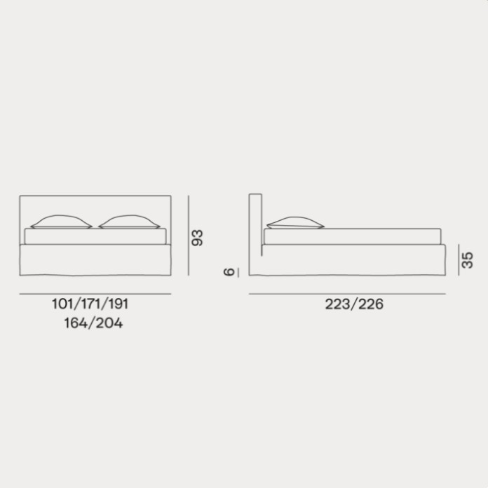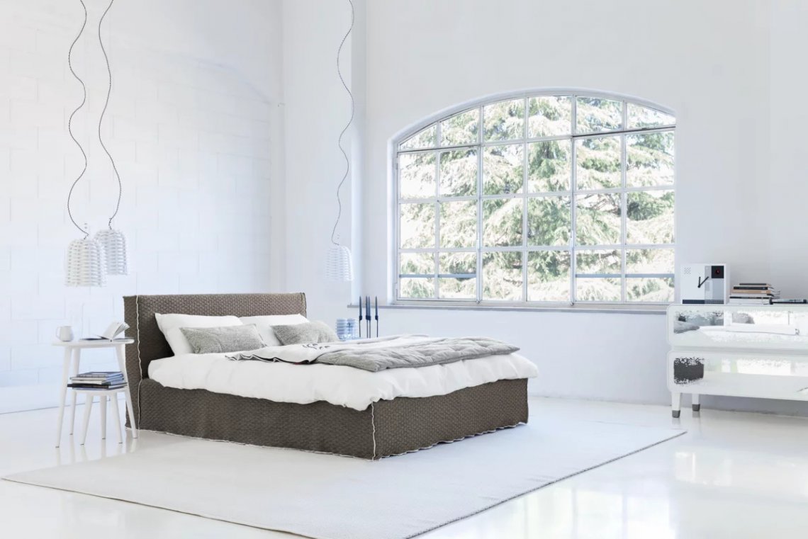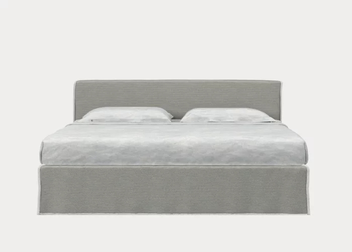 :Letto matrimoniale imbottito dalla forma minimale e geometrica, Birck 80 è caratterizzato da linee essenziali evidenziate dalla cucitura a vista del rivestimento che ne disegna il profilo. I piedini sono nascosti da una morbida housse, interamente sfoderabile e il materasso è posizionato leggermente all’interno della struttura, per un riposo protetto ed avvolgente.