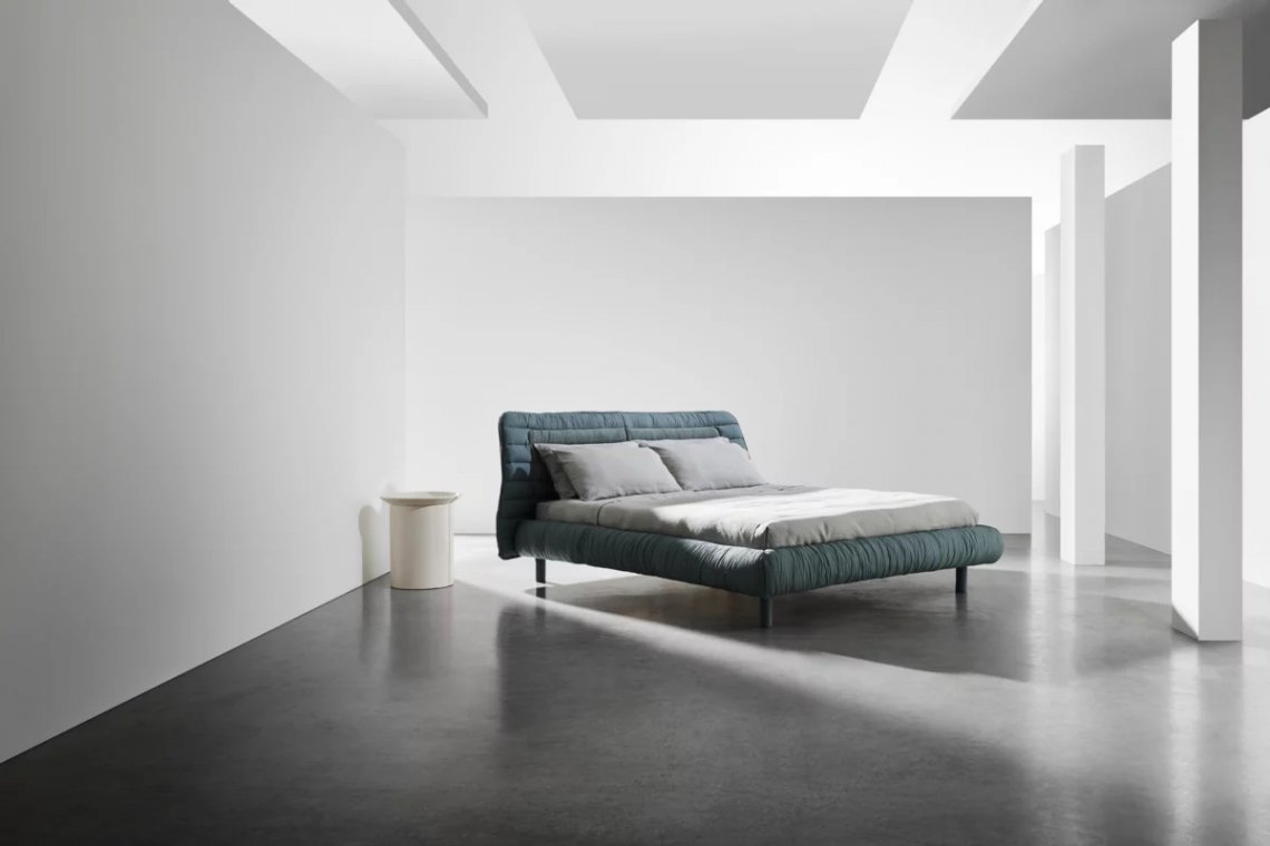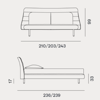 Letto imbottito con giroletto smontabile. Testiera in poliuretano su struttura in legno multistrato curvato. Rivestimento della testiera e del giroletto sfoderabile in tessuto trapuntato. Supporti rete regolabili in diverse altezze. Piedini in legno rivestiti in tessuto. Disponibile in tutti i tessuti di campionario eccetto 3D, Quilt Malta e Quilt Velour.
