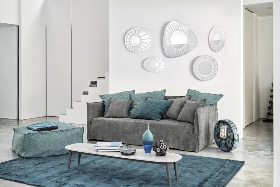 La famiglia di pouf Ghost ha forme geometriche e dimensioni consistenti e strutturate. Disponibili con struttura imbottita in poliuretano espanso a quote differenziate oppure in polistirolo, i pouf Ghost hanno come caratteristica principale il rivestimento sfoderabile, una housse oversize il cui profilo è sottolineato dalle cuciture a vista, che permette ai prodotti di svestirsi e rivestirsi in un baleno. Si tratta di un progetto tessile che cambia facilmente volto, permettendo di passare da un look formale ad uno informale con facilità e velocità.