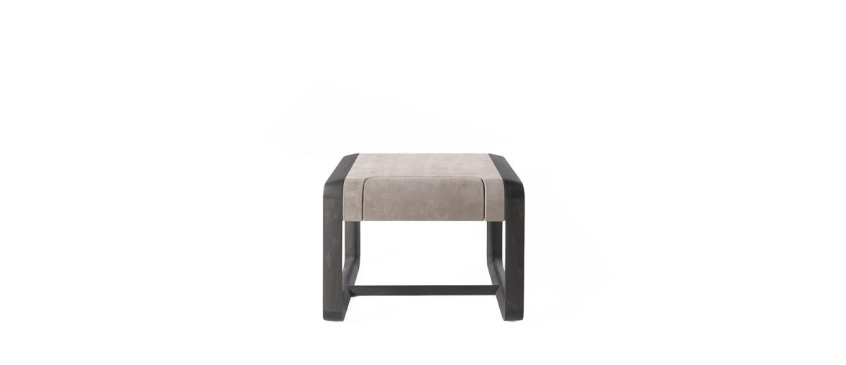 Night table with top panel in curved multilayer wood covered in cat. B leather Nabuk L.08.04 Sand.