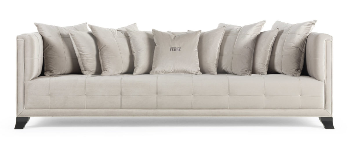 4-seater sofa with structure in beech wood and foam. Upholstery in fabric cat. A | L.16.01. Legs in black lacquered finishing.