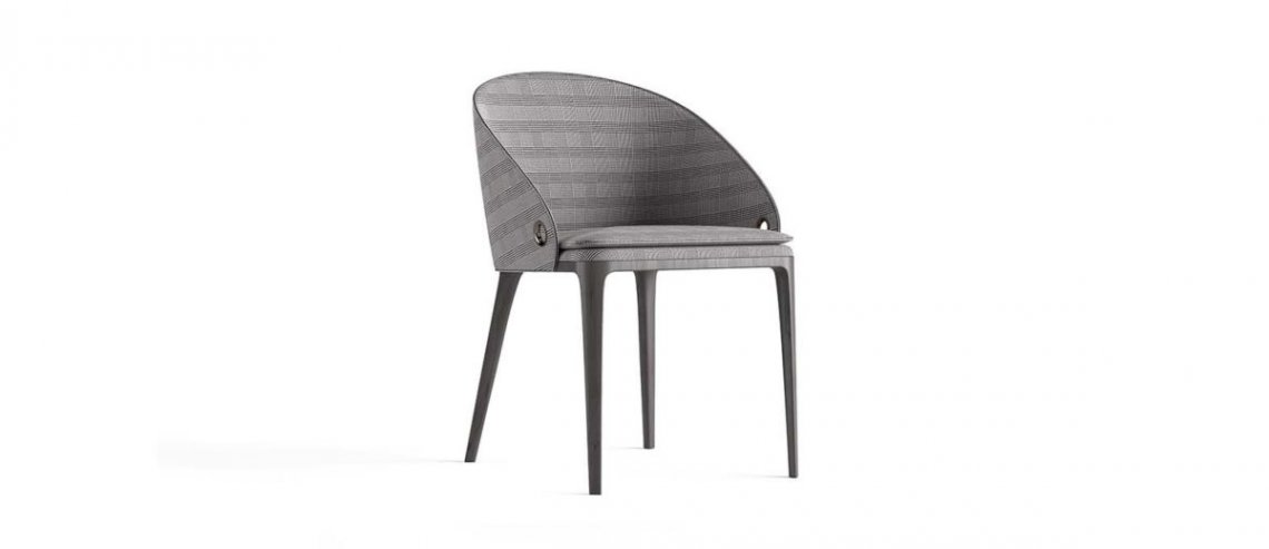 An elegant silhouette and clean lines for the new Rio chair. The contrast between the slim structure of the legs in Smokey Grey finishing and the enveloping shape of the seat upholstered with fabrics of the collection makes the chair original and appealing. The peculiarity of the lateral handles lends an original touch to this sophisticated and super chic piece of furniture.
