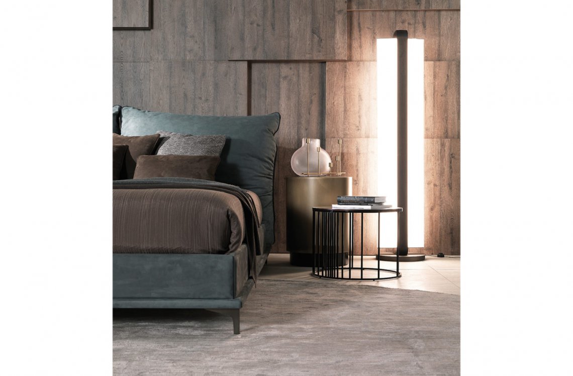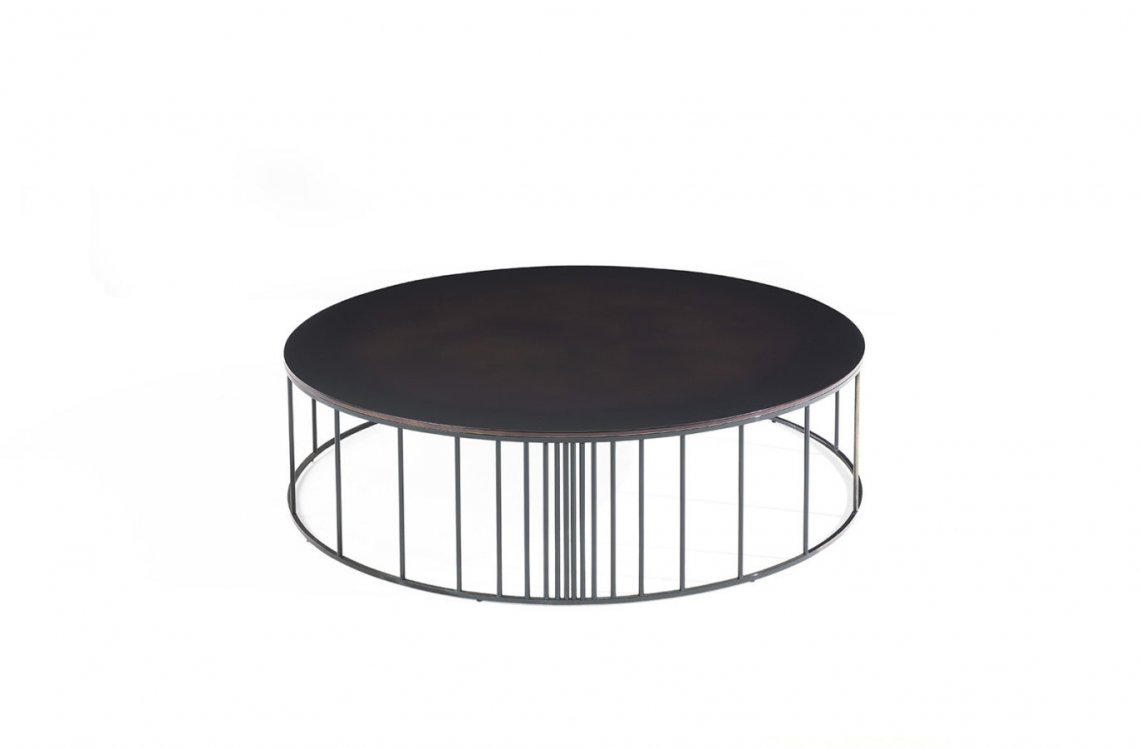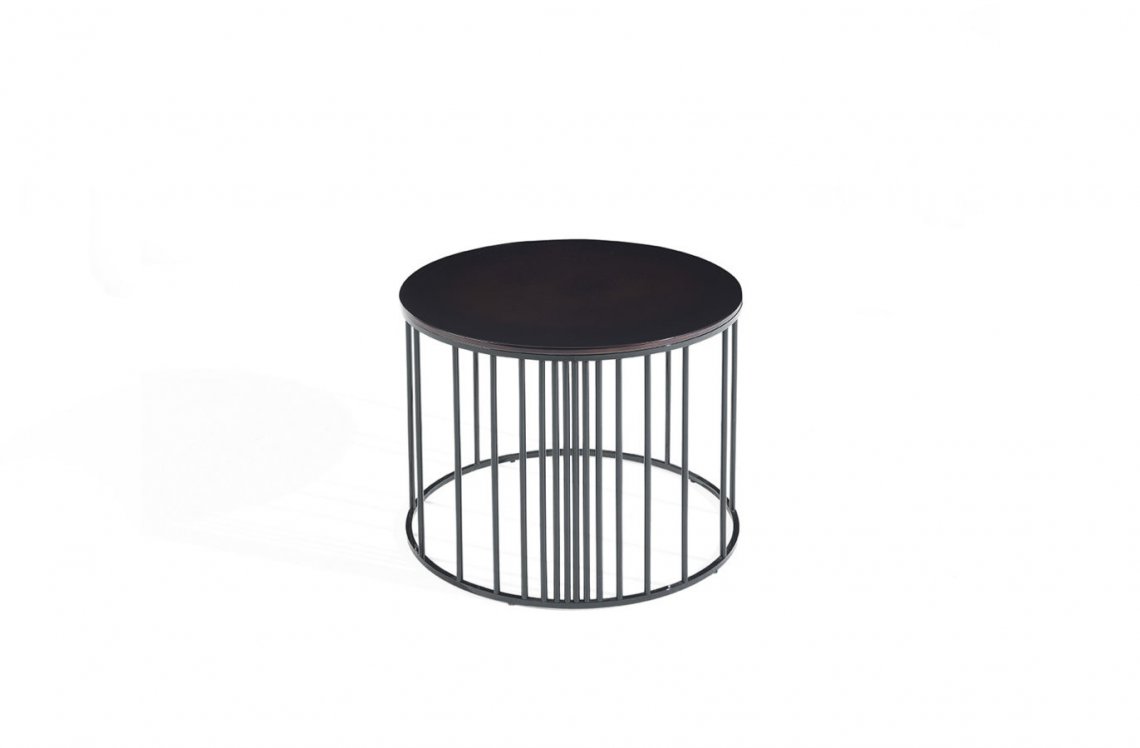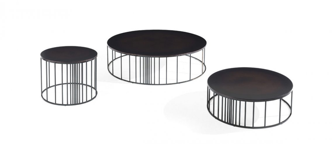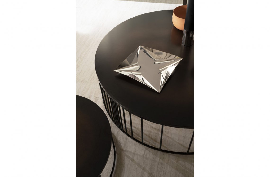 Versatile and eclectic, Doppler small table is characterized by a round top in multilayer wood veneered in Tay Dyed Smokey Grey, supported by a light structure with cylindrical cross-sections with black finishing. Available in different heights and diameters, it allows the creation of fluid and functional compositions, to be inserted in a contemporary living room or bedroom.