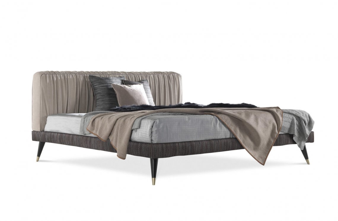 The refined pleating of the headboard, an element that denotes the sartorial skill of the Gianfranco Ferré Home brand, is the distinctive element of the Highlander bed, enriched with feet with bronzed wood ferrules.