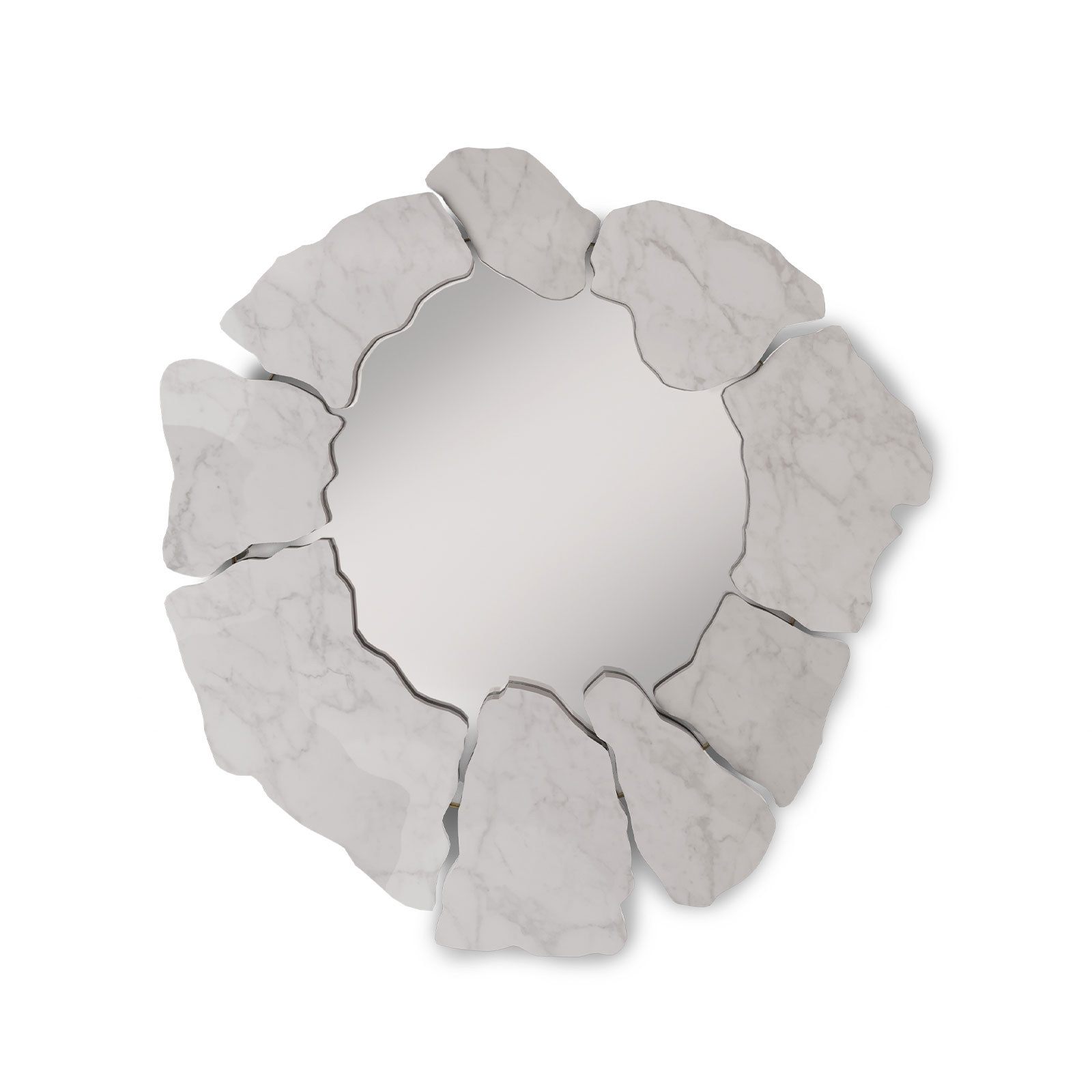 The Islet Mirror draws inspiration from small uninhabited islands, that remain in their primal state, only exposed to the elements. The Islet Mirror has a delicate composition of elements in succession, in a dialogue of marble, metal and lacquer, and shapes that surrounds the subject, reflected within. The Islet creates a tranquil dynamic for living spaces.