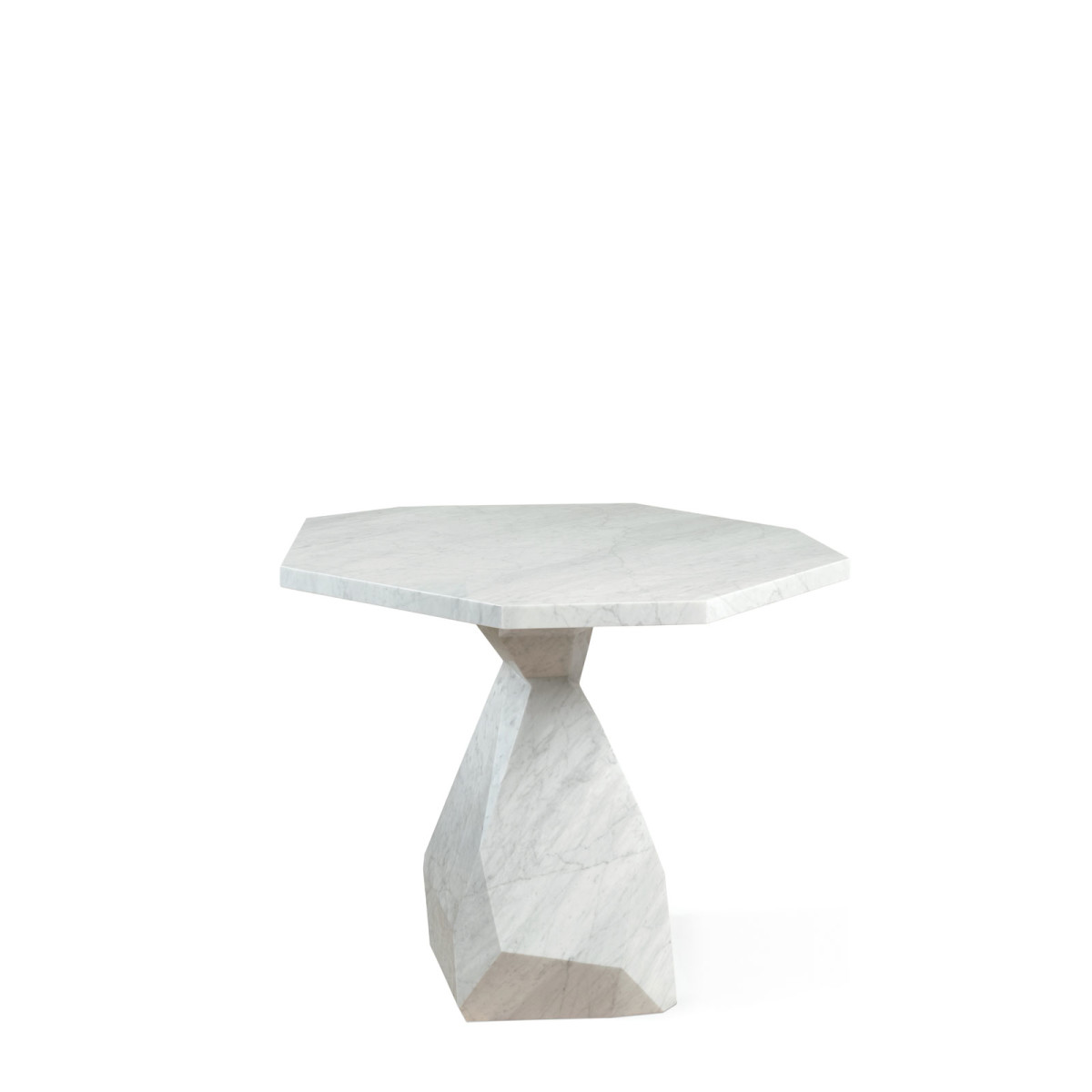 Encapsulating the commanding presence of Nature, the Rock Dining Table is a bold design statement. Made from a single block of marble, the Rock is a soothing yet unmistakable presence. The likeness of its faceted geometry can be found in Nature in raw form.