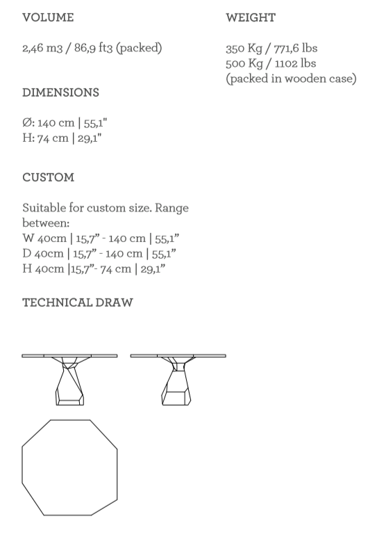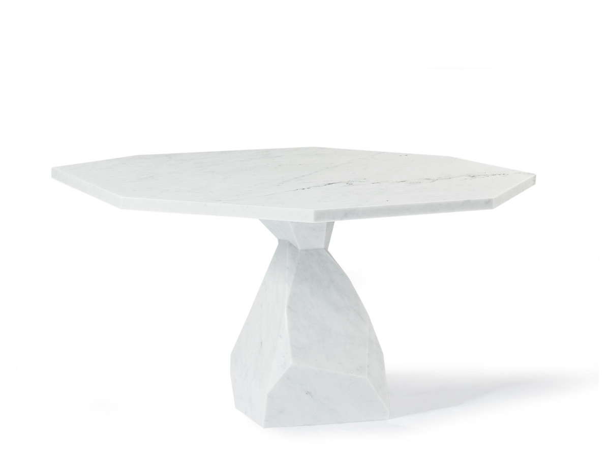 Encapsulating the commanding presence of Nature, the Rock Dining Table is a bold design statement. Made from a single block of marble, the Rock is a soothing yet unmistakable presence. The likeness of its faceted geometry can be found in Nature in raw form.