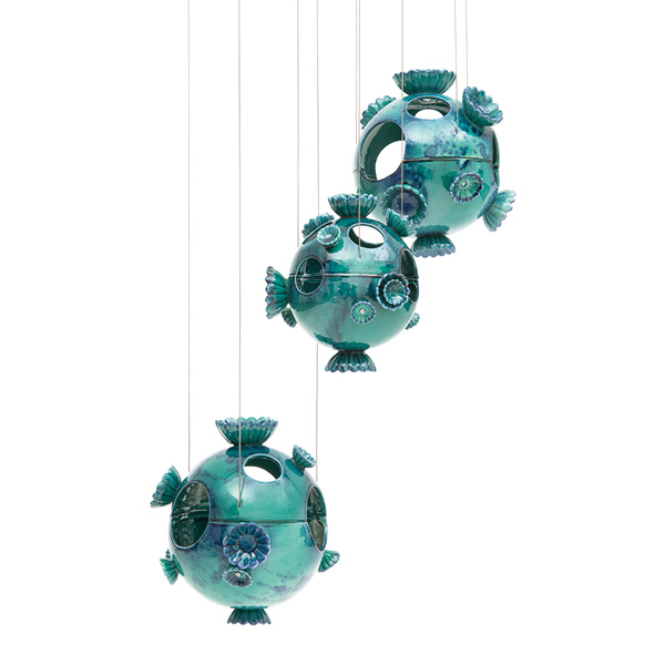 Domestic sculpture with a clear floral inspiration that recalls the spherical shape of marimo, a Japanese ballweed.