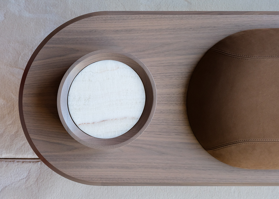 Designed for intimate and cozy spaces, Liz-bench is distinguished by the softness of its cylindrical shapes.