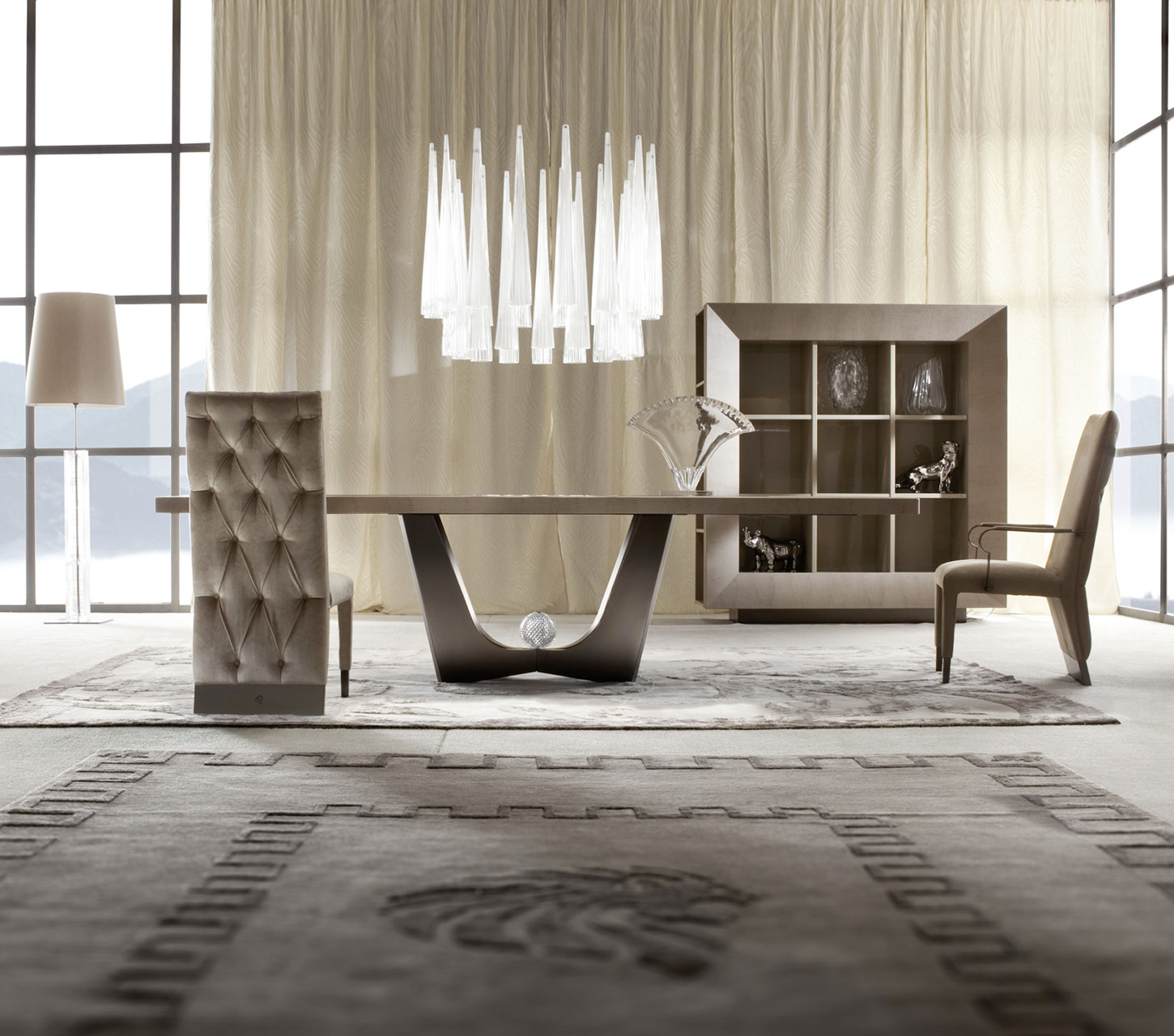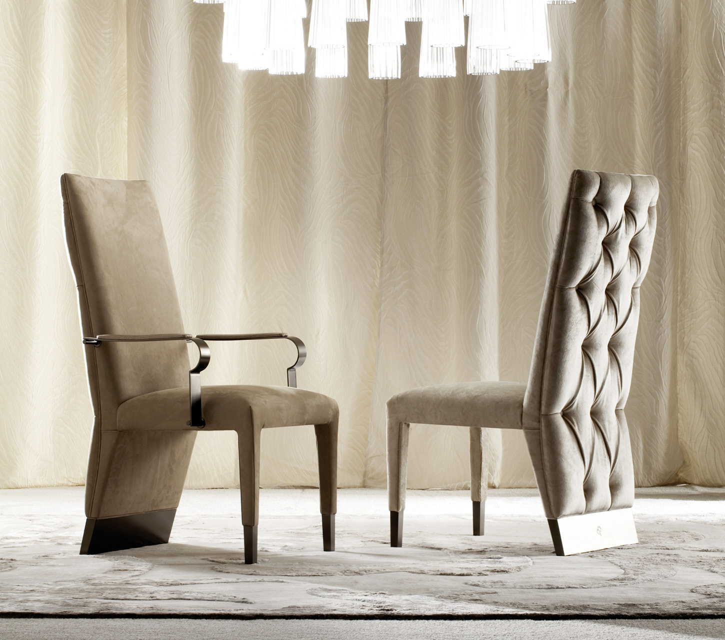 Arm chair completely upholstered w/buttoned back. Bronzed brass arms and back base with Giorgio Collection logo insert, 2 fronts legs in bronzed brass.