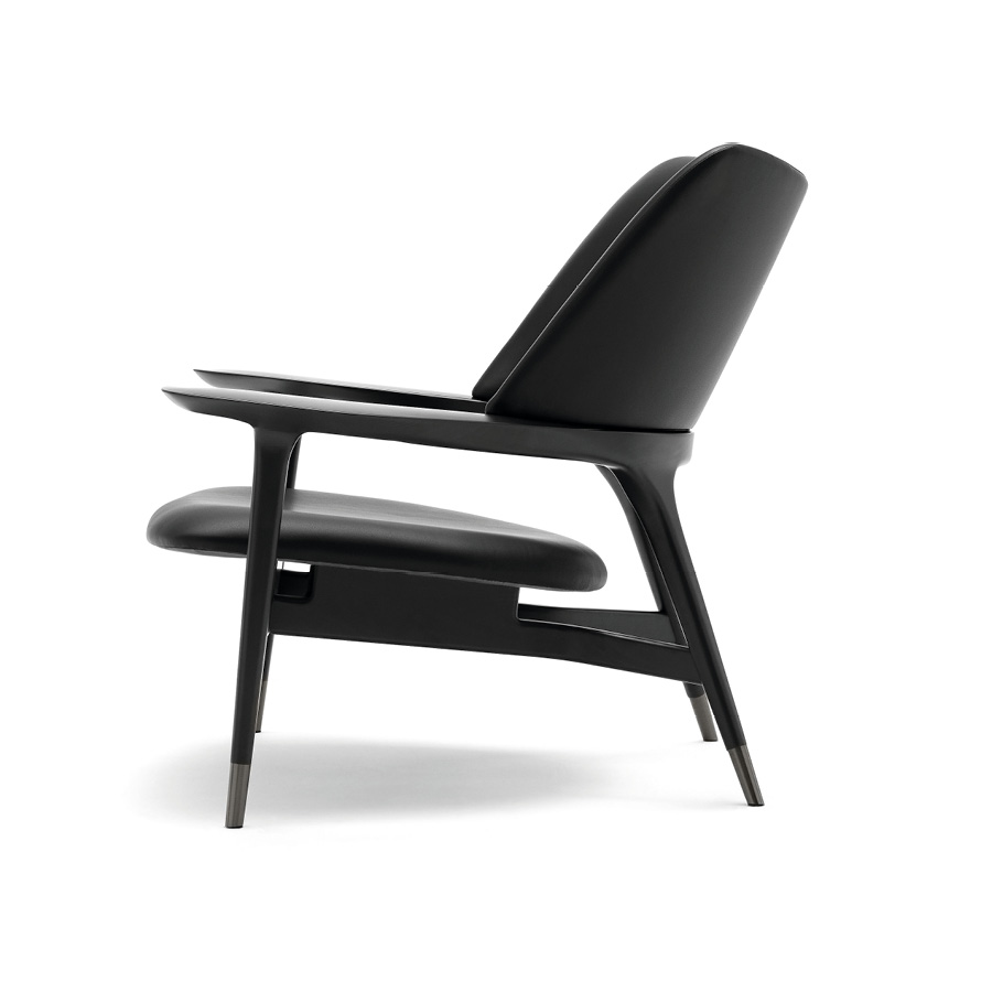 Occasional chair available in first grade leather, nubuk leather, lizard printed leather, velvet or suede fabric. Structure in solid stained black bleached wood. Wooden base wich Giorgio Collection logo.