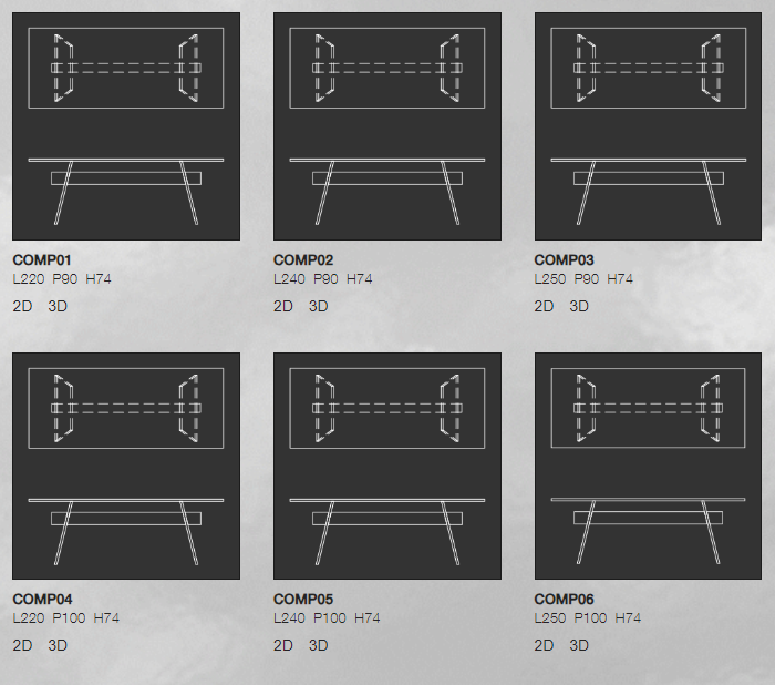 Serie di tavoli da pranzo rettangolari con piano in cristallo trasparente mm 19 e base in cristallo trasparente mm 24 temperato. Una trave, in un unico massello di grosso spessore, passa attraverso i fori - a filo lucido inclinato - dei cristalli della base, unendoli e sostenendoli. Dei cunei in metallo cromato lucido si inseriscono ad incastro nei fori rastremati presenti sulla trave in legno, bloccando saldamente le lastre di cristallo della base e conferendo alla stessa massima stabilità e solidità. La trave, in massello di rovere, è disponibile in due finiture naturali: con spazzolatura profonda e finita a cera, oppure carbonizzata per mezzo di un trattamento termico. I piedini e i supporti delle basi e del piano sono in metallo cromato lucido.