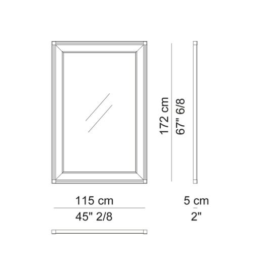 Wall mirror, shaped solid wood and lacquered wood. Mirrored glass 4 mm.