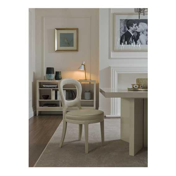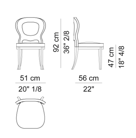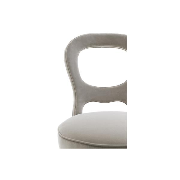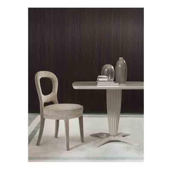 Dining chair with solid beech wood structure. Plywood seat. Polyurethane foam and polyester fiber lining. Non-removable cover. Gros grain piping.