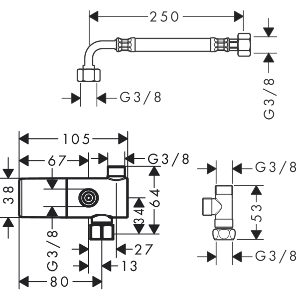 flow rate hand shower connection at 3 bar: 16 l/min