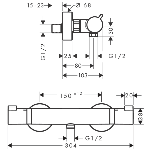 centre distance: 150 mm