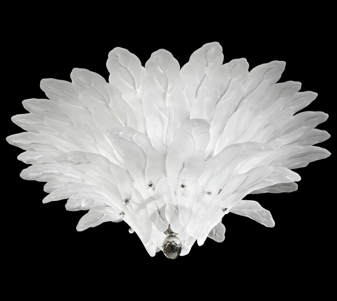 Ceiling lamp in graniglia glass and metal with gold finish. Available in different dimensions. Opera Classic Collection.