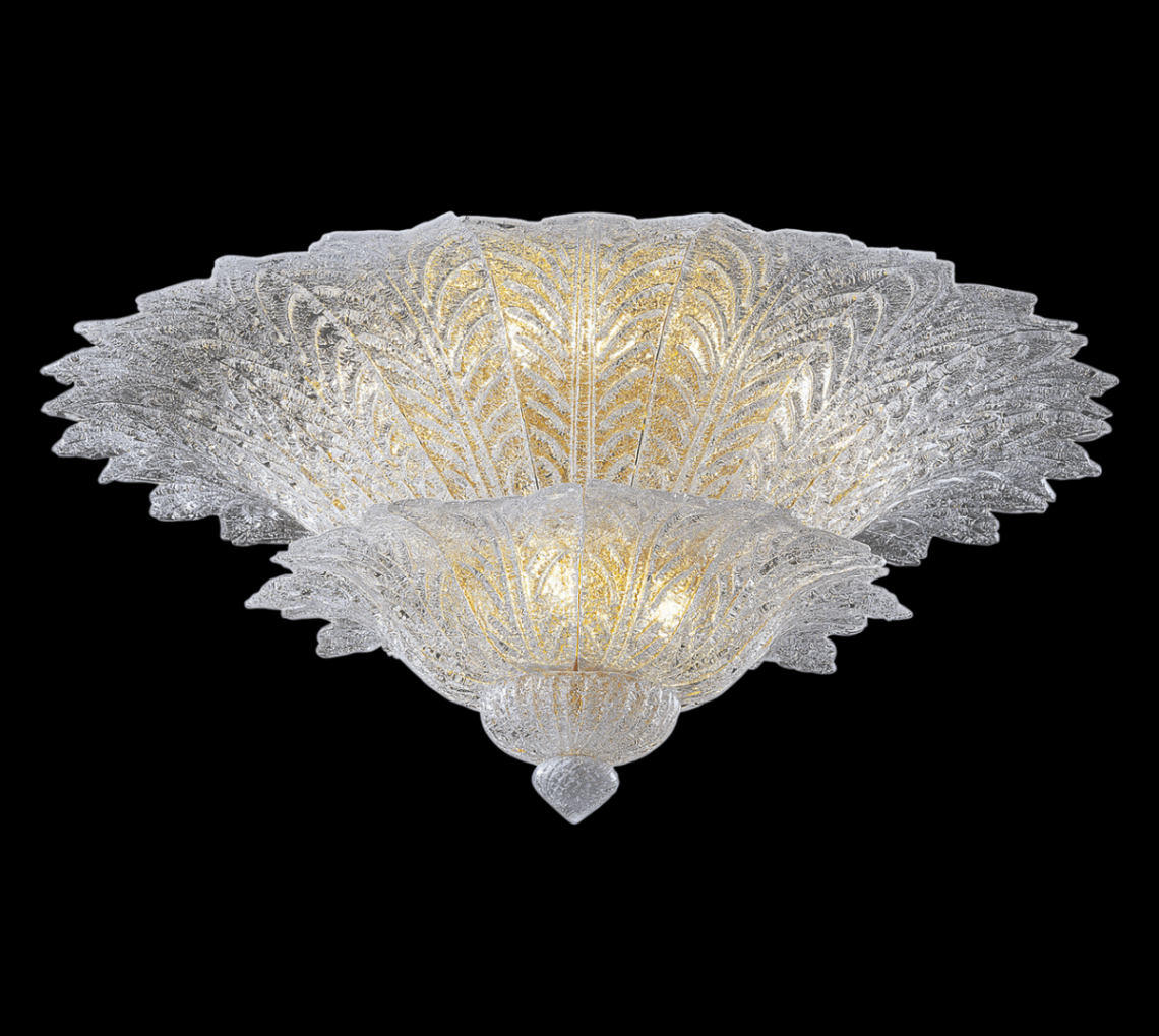 Ceiling lamp with satin glass leaves and nickel metal details. Available in different dimensions and colours. Opera Classic Collection.