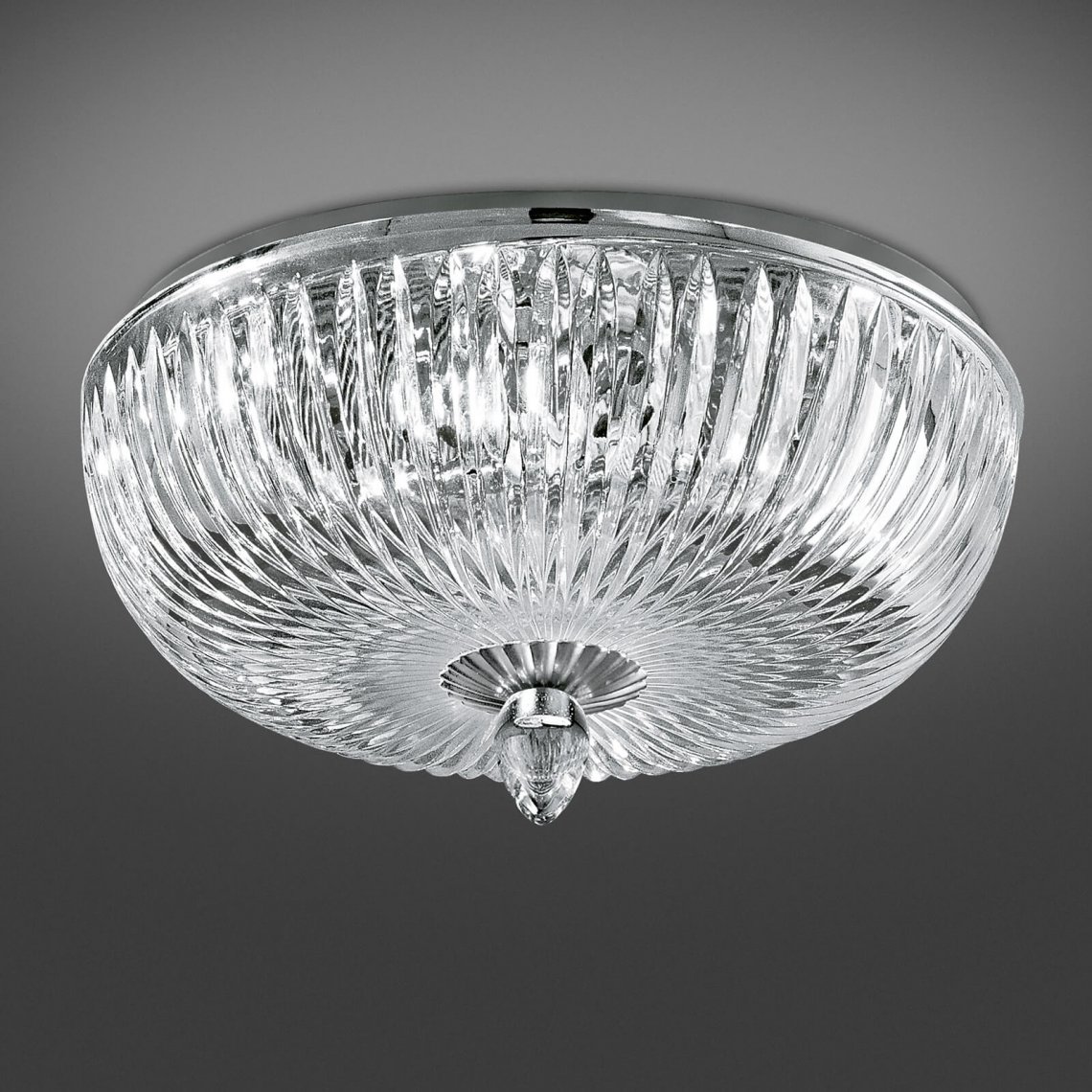 Ceiling lamp with chrome metal and carved crystal diffuser. Opera Classic Collection.