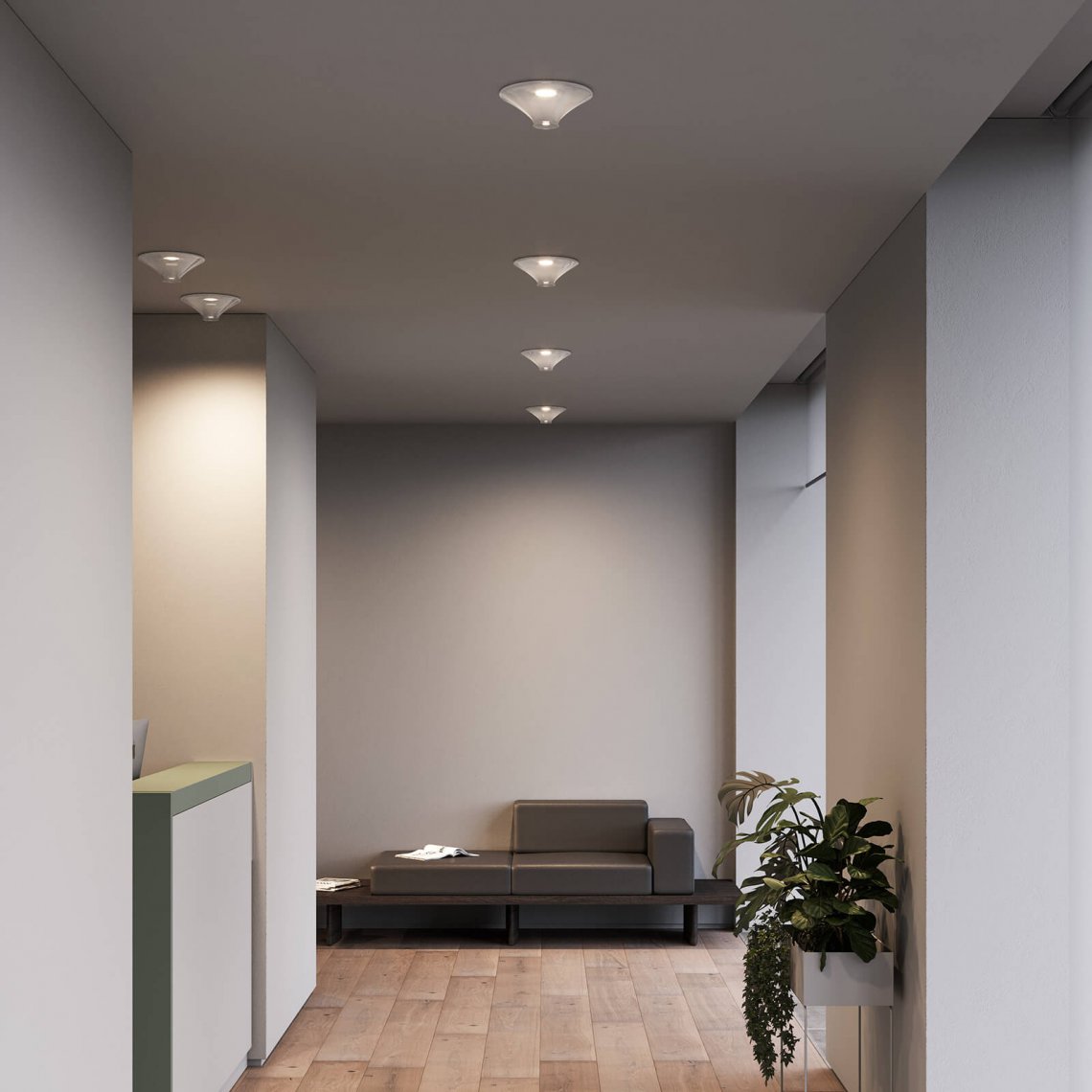 Spotlight with blown glass in gold, titanium or white shaded finish.