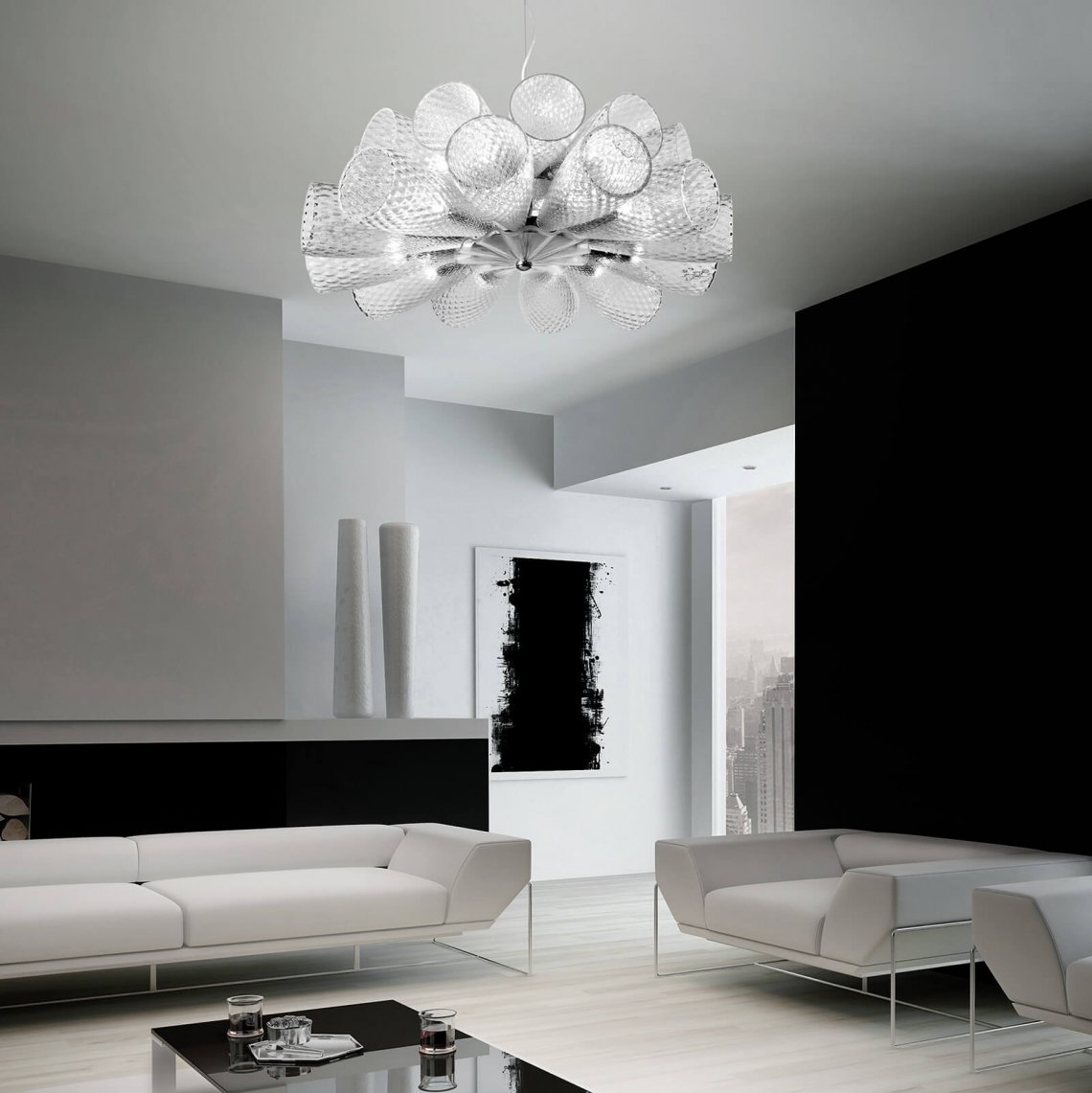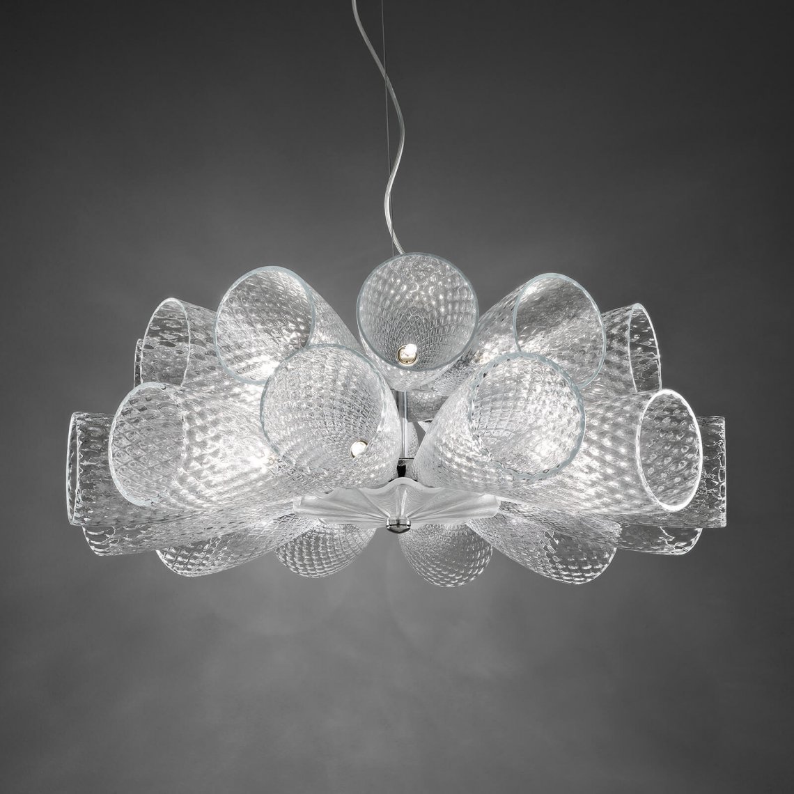 Pendant in transparent glass with chrome metal finish. Available in different dimensions and colours. Incanto Modern Collection.